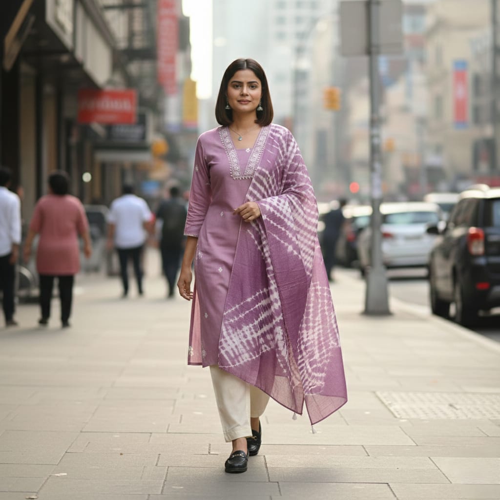 Elevate your ethnic wardrobe with this sophisticated salwar suit crafted from premium modal silk in a rich purple hue. The luxurious fabric drapes beautifully while maintaining breathability, making it ideal for both festive occasions and everyday wear. Modal silk's natural softness ensures exceptional comfort against the skin, while the vibrant purple shade complements a wide range of complexions. This versatile ensemble combines traditional silhouette with modern fabric technology, offering durability and easy maintenance. Perfect for celebrations, family gatherings, or making a graceful statement at any event.